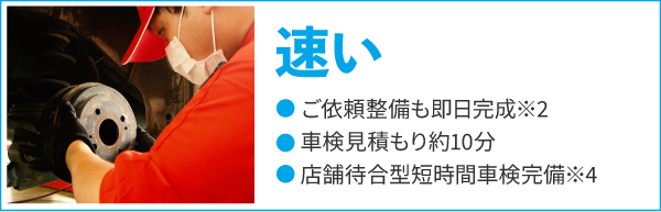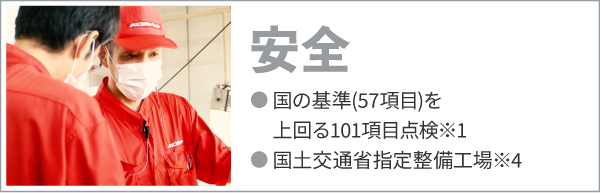 全国ネットの車検専門チェーンに裏付けされた高度なシステムと多彩な割引制度で高次元の品質、サービス、プライスを実現しています。